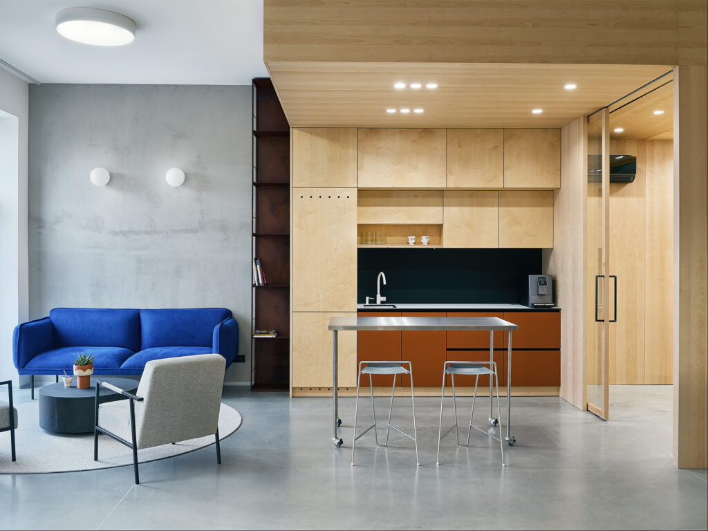 V případě části kancelářského zázemí, zasedačky a lounge zóny šlo o to, aby se zaměstnanci cítili příjemně. Je ale také potřeba, aby je prostředí aktivovalo a bylo lehce pulzující a vibrující. Zázemí dotváří identitu firmy a působí pozitivně i na zákazníky a partnery.