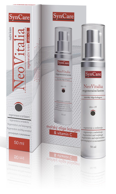 Obsažený oligo mořský kolagen spolu s vitamínem C, extrahovaným z plodů šípku, mají přímý vliv na revitalizační procesy pokožky a její omlazení, zatímco blahodárný enzym SOD (superoxid dismutáza) pleť projasní a vrátí ji zdravý vzhled i barvu. Díky kombinaci ušlechtilých olejů je NeoVitalia bohatým krémem vhodným pro pleť se známkami stárnutí. NeoVitalia vyhlazuje vrásky, zpevňuje kontury a posiluje tonus pokožky.