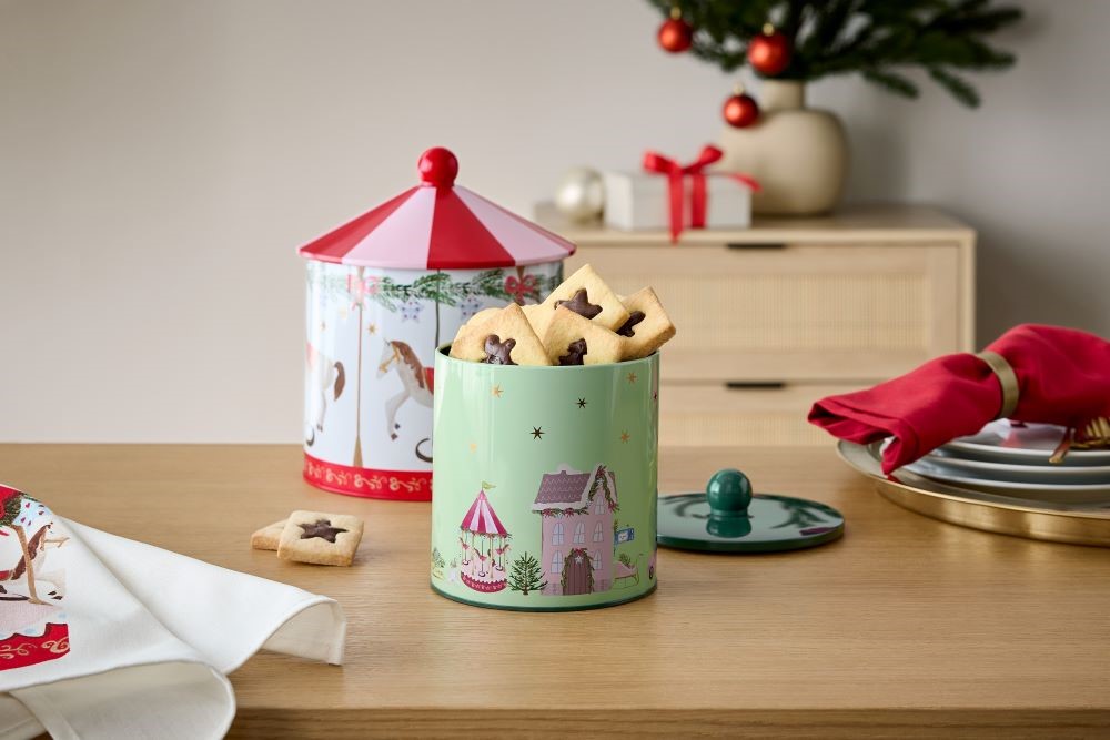 Kam jen schovat cukroví, které mizí nebezpečně rychle? Vánoční dózy na uschování přichází jako na zavolanou. V sadě jsou dvě velikosti, které lze pro úsporu místa vložit jednu do druhé. Pomohou udržet cukroví či sušenky déle čerstvé a zároveň dodají kuchyni sváteční atmosféru.