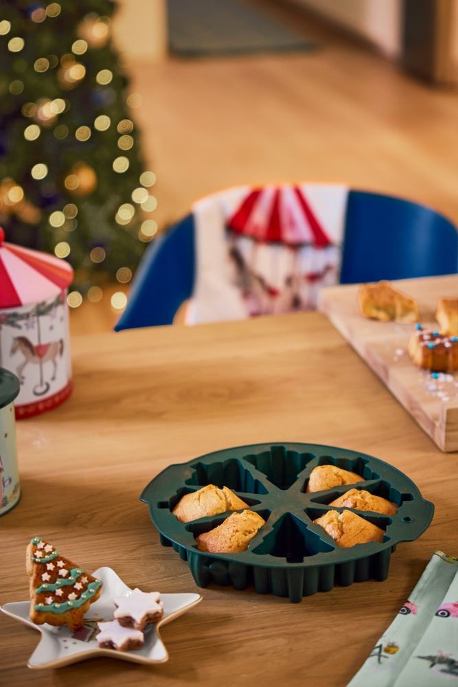 Pro přípravu osmi malých muffinů ve tvaru vánočního stromečku se skvěle hodí forma z flexibilního silikonu, která zajistí snadné vyjmutí bez poškození. Vnitřní vzor formy vytváří jemnou ozdobu přímo na povrchu upečených dobrot. Stačí těsto jednoduše rozetřít do formiček. Po dopečení pak lze formu bez obav umýt v myčce.