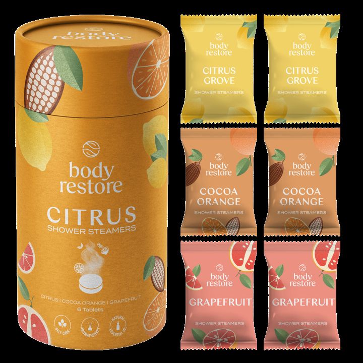Tablety do sprchy Body Restore Citrus promění každodenní sprchovou rutinu v jedinečný aromaterapeutický zážitek, který povzbudí tělo i smysly a zároveň uvolní mysl. Stačí vložit jednu tabletu Body Restore na podlahu sprchy mimo přímý proud vody a přírodní esenciální oleje vás obklopí intenzivní vůní citrusového háje, grapefruitu nebo kakaa a pomeranče. Je to ideální dárek nebo speciální odměnou pro vás samotné. Balení Body Restore (6 tablet) citrusových vůní zakoupíte na Notino.cz za 289 Kč.
