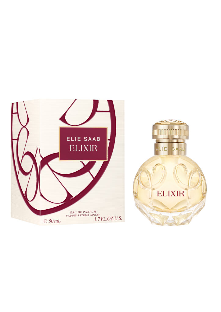 Pro tento nový vonný příběh ELIE SAAB vznikl zcela nový flakon evokující kulatý klenot ukrývající magický elixír. Zlaté víčko, zdobené vyrytým monogramem módního domu ELIE SAAB, vytváří okamžité spojení s precizním řemeslným uměním značky. Název vůně ELIXIR je vyobrazen červenými písmeny zdůrazňujícími smyslnost.